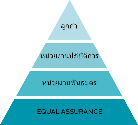 Equal Assurance เป็นสมาพันธ์ทั่วโลก ที่เกี่ยวข้องกับ การดำเนินงานด้านการจัดการที่เป็นอิสระ และเป็นพันธมิตรที่ผ่านการรับรอง  การแบ่งปันความคิด ทรัพยากรและเครือข่ายความร่วมมือ ด้วยวิสัยทัศน์ที่จะทำให้มั่นใจในความเชื่อมั่นทางธุรกิจผ่านการให้เกิดบริการ การรับประกัน และการรับรองระบบ